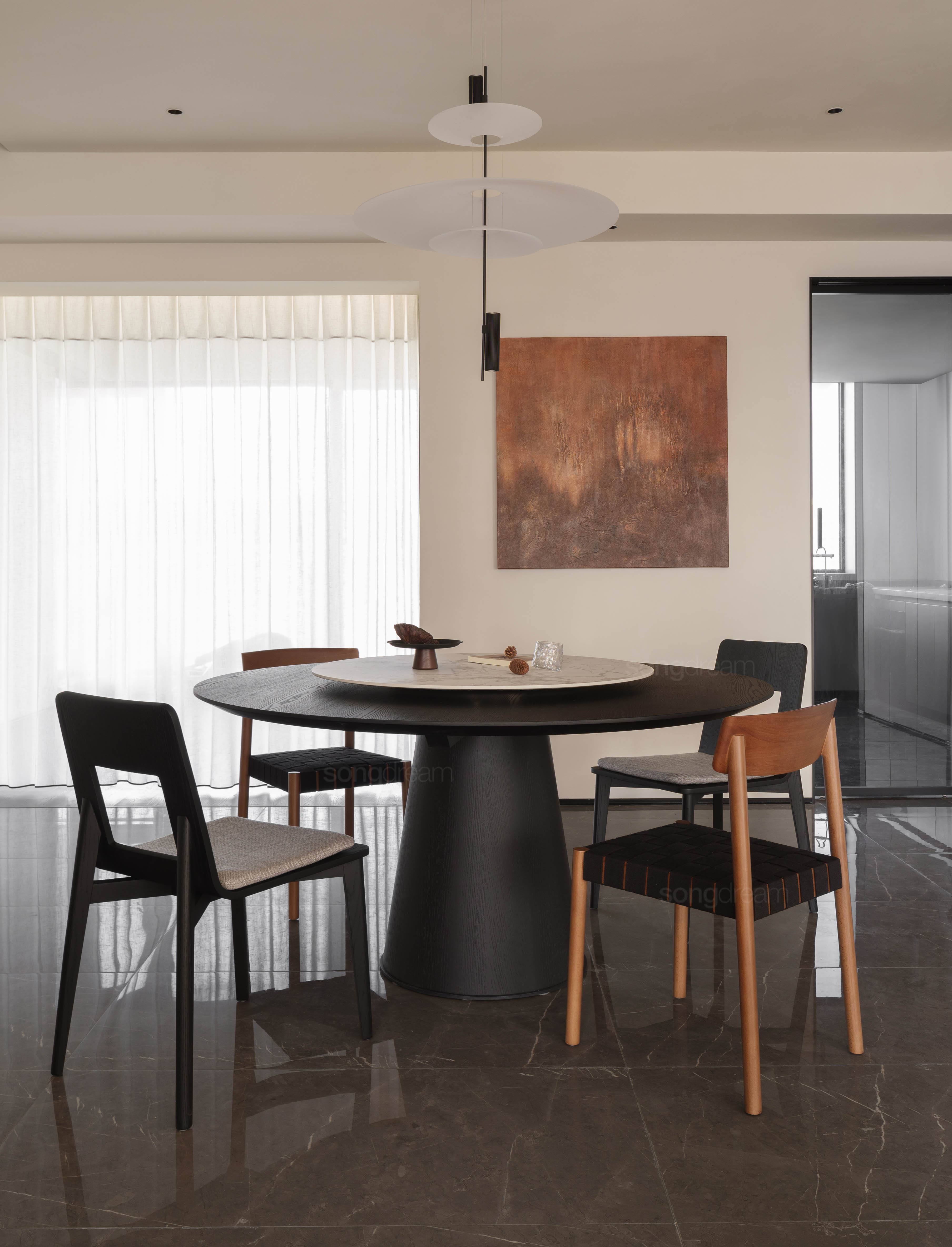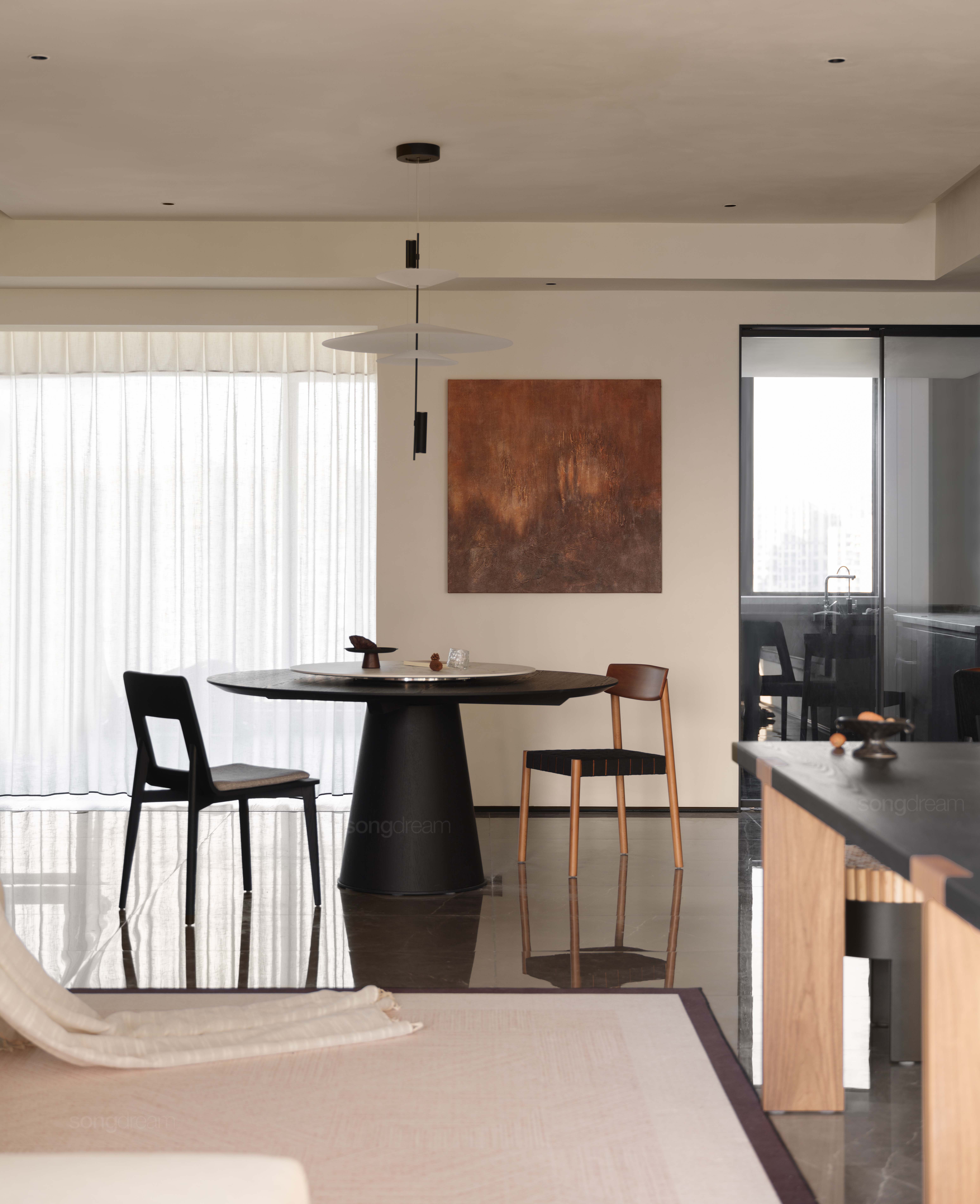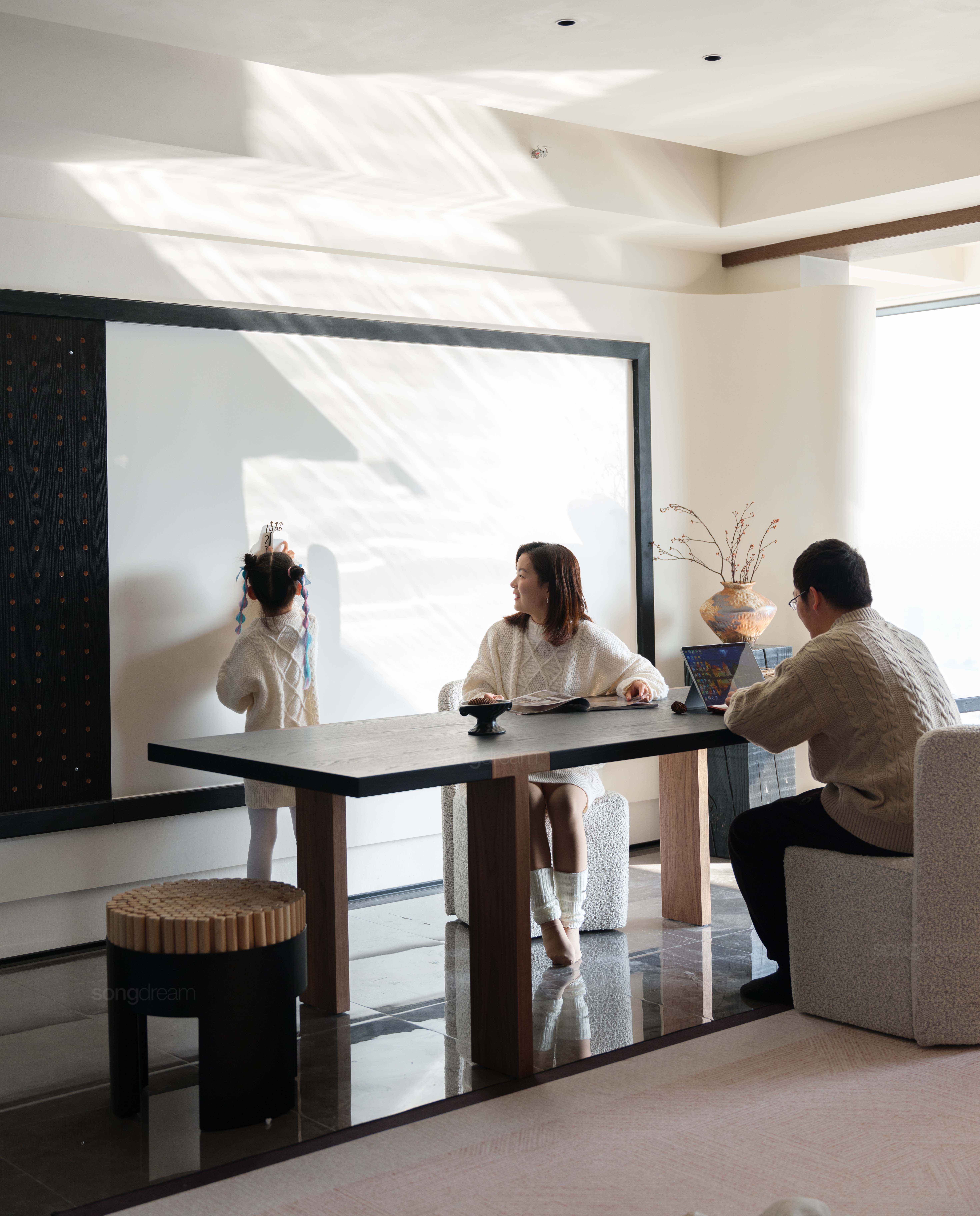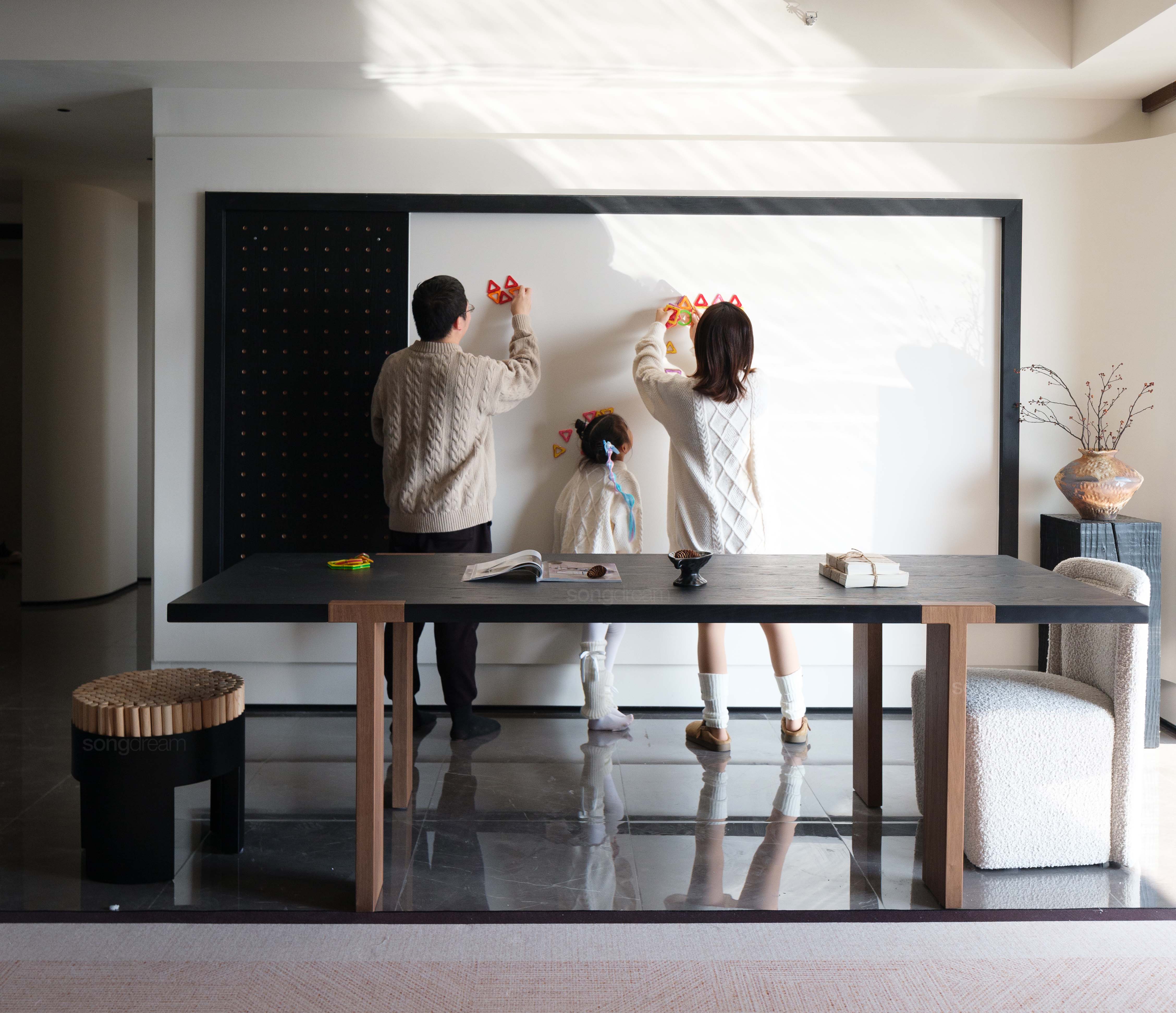 本案以「中古侘寂」为精神内核,摒弃浮华,回归质朴与宁静,打造以人为本的多功能亲子空间。