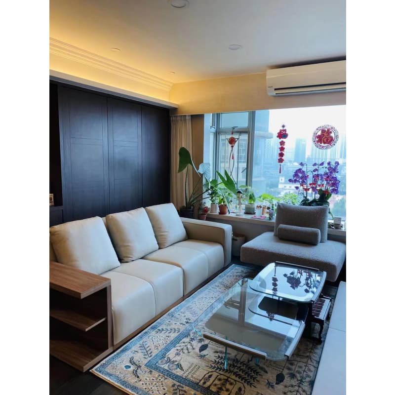 It looks much more stable,dignified and elegant with solid wooden base frame.The wooden armrest can be with or without,which is more flexibility and practicality to the different space requirement. The sofa looks nice and well-shaped due to the unique piping design. The strong backrest with soft & big back cushions to ensure its comfortable and durable.